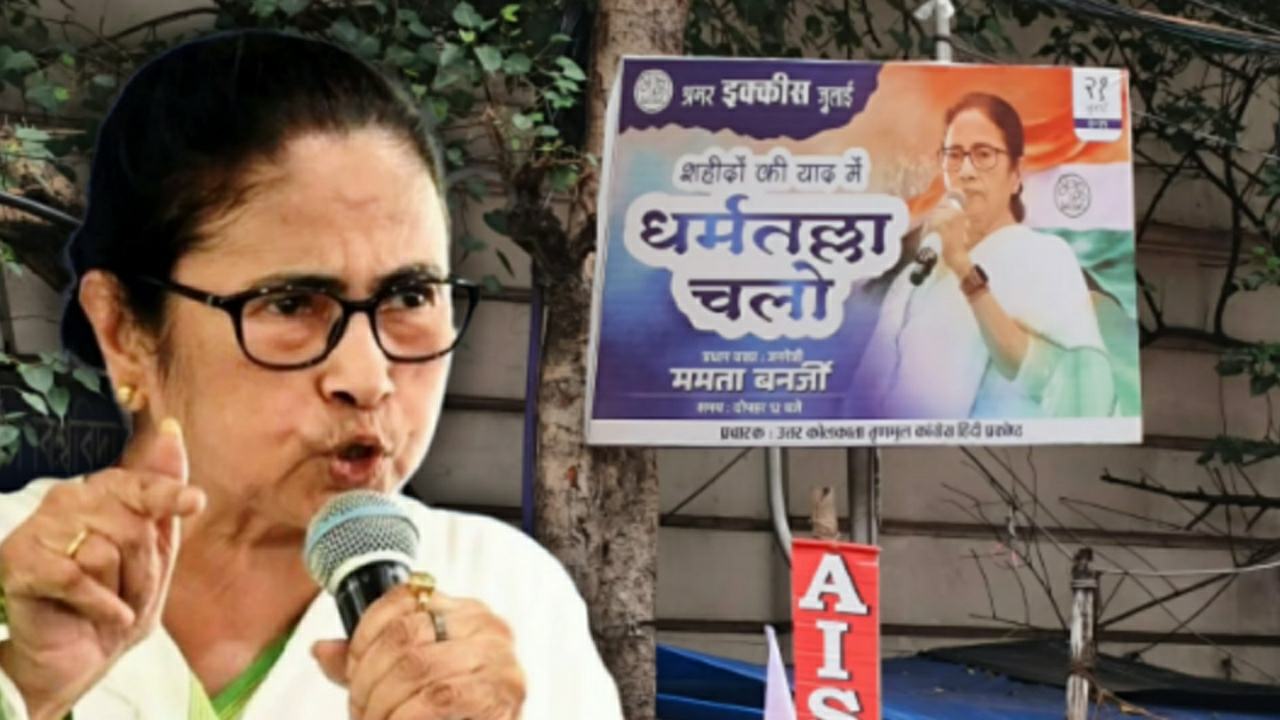 মুখ্যমন্ত্রী যখন ভাষা আন্দোলনের দাপটে বোলপুর কাঁপাচ্ছেন, তখন কলকাতার রাজপথেই দেখা গেল হিন্দির রাজত্ব। তাও আবার তৃণমূলেরই (Trinamool Congress) একুশে জুলাইয়ের পোস্টারে! কলকাতা বিশ্ববিদ্যালয়ের ঠিক সামনেই বাংলা হান্টের ক্যামেরায় ধরা পড়ল একটি পোস্টার। তৃণমূলের (Trinamool Congress) একুশে জুলাইয়ের সমাবেশের পোস্টারে বাংলা নয়, লেখা রয়েছে হিন্দিতে।
